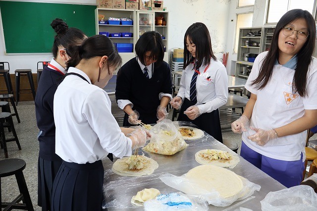 今回のメインイベントの一つである「桃園市立楊梅高級中學」との学校交流。盛大な歓迎セレモニーのあと、生徒たちは3つのグループに分かれて台湾文化を体験しました。