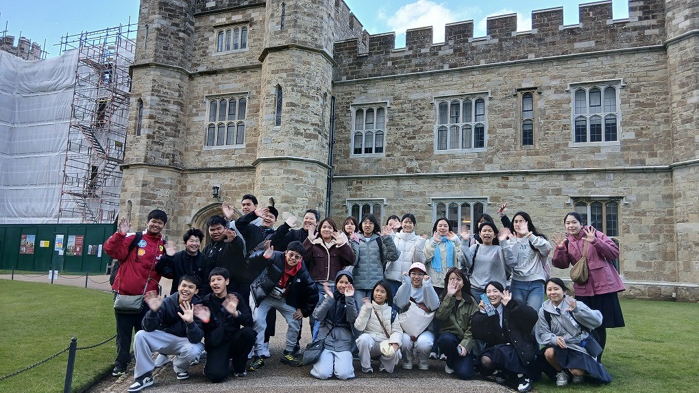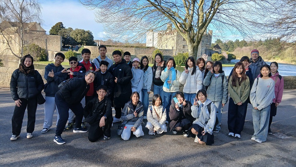 2026年3月25日 / 最終更新日時 : 2026年4月9日 皇學館高等学校同窓会 お知らせ 皇學館中学校・高等学校イギリス研修7日目 おはようございます! 今朝は少し肌寒いですが、日差しもあって青空が見える気持ちの良い朝となりました! 生徒たちは全員元気に登校し、現在は現地校訪問出発まで英語レッスンを受けています! 通学にも慣れてきました! 昨日仲良くなったタイの生徒と、朝からおしゃべりも弾みました! 学校の内観と中庭テラスからの外観です! 現地校訪問として市内にあるKent Collegeを訪問させていただきました!研修開始前から大変お世話になっているコンコルドスタッフの鶴貝さんに引率していただき、一緒に記念写真! まずはスタッフのKarenさんからKent Collegeに関する説明をしていただきました。全校生徒約400名が在籍する私学のボーディングスクールで、約40か国からの留学生が集まっているそうです! 寄宿舎で生活する学生さんが、学生寮・教室棟・食堂・体育館など学校内の施設案内をしてくれました! 学校に戻ってランチを食べたあと、現在はバスでリーズ城に向かっています! リーズ城に到着!バスを降りて、広大な敷地を歩いてお城まで向かいます! 写真では分かりにくいですが、さっきまで晴れて青空が見えていたと思ったら、雪かみぞれ混じりの雨にも見舞われました・・・! 貴婦人の城とも呼ばれるリーズ城。かつてのイングランド王妃が暮らしていた城内を見学します。 疑問に思ったことがあれば、引率の先生にも積極的に質問していました! 150年前のピアノを弾かせてもらえるという滅多にない経験もできました! タイの生徒たちと一緒に記念写真!見学中もおしゃべりをしたりと交流を深めていました! 敷地内にあるMaze(迷路)にも挑戦!なかなか出口が見つからずに迷いに迷った挙句、結局入口に戻りました・・・! リーズ城をバックに記念写真! 最後に売店で買い物も楽しみました! バスでカンタベリーへと戻り、無事に一日が終了しました。今日は出かけの一日でしたが、充実した時間を過ごすことができました! 明日はまた一日学校でみっちりと英語レッスンを受けます! 皇學館高等学校同窓会お問い合わせ・記事投稿フォーム 皇學館高等学校同窓会事務局 〒516-8577 伊勢市楠部町138(皇學館高等学校内) ☎ TEL 0596-22-0205 お問い合わせ・記事投稿はこちらから コメントを残す コメントをキャンセルメールアドレスが公開されることはありません。 ※ が付いている欄は必須項目ですコメント ※ 名前 ※ メール ※ サイト Δ